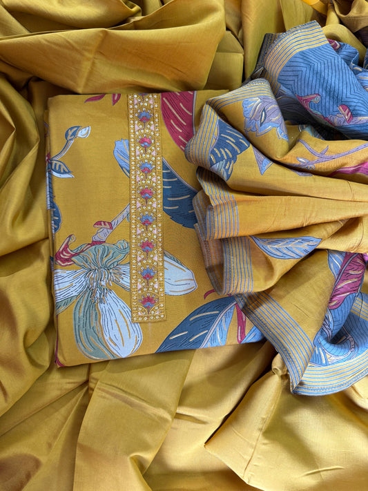 Chic and comfortable Unstitched Soft Muslin Salwar Suit with Smart prints (DCUS00022)
